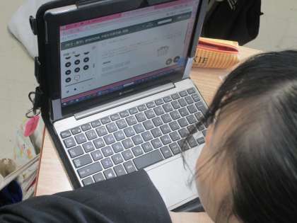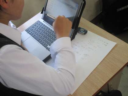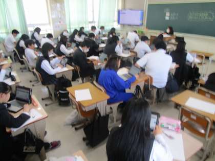 昨日に引き続き、本日2年生でIRT調査を1年生で実施しました。質問紙・国語・数学です。一生懸命にタブレットに向かっています。
