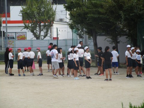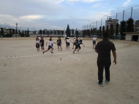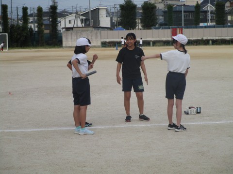 10/2の16時~校区の3小学校の6年生を迎えて、陸上競技部の顧問の先生や先輩の生徒たちが走り方やバトンパスの方法などを伝授してくれています。