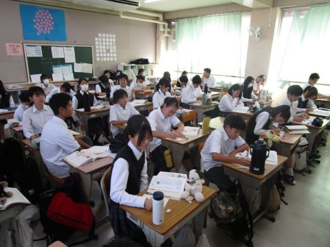 今回は,担当の先生が作った参考PPをみんなで聴いています。