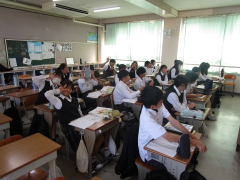 今日は2年3組の「How Do We Stay Safe?」の聞き取りを行っていました。災害時に役立つものの説明から、必要な情報を聞き取ることができましたか?