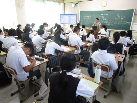 今回は,担当の先生が作った参考PPをみんなで聴いています。