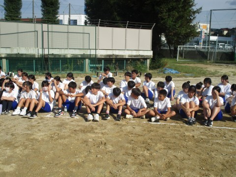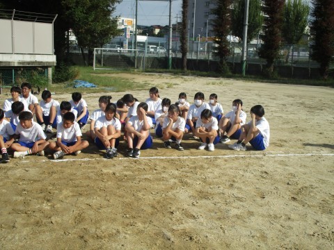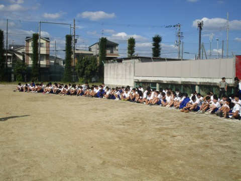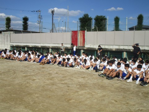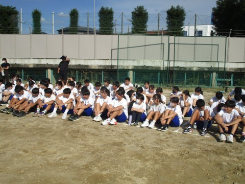 西日が厳しい6時間目のグラウンド。3年生の学年練習が始まりました。