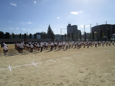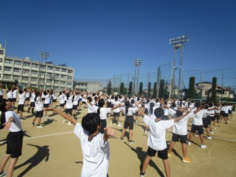 昨日の3年生に負けず劣らず,しっかりと取り組んでいます。整列の様子もふらふらすることもなく,素晴らしい隊形を維持しています。今年の体育大会も素晴らしいものなる予感がします。