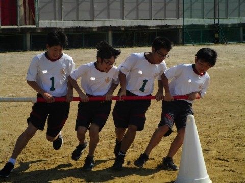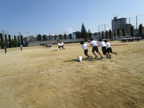 体育大会に向けて,1年生の全体練習にも熱が入っています。