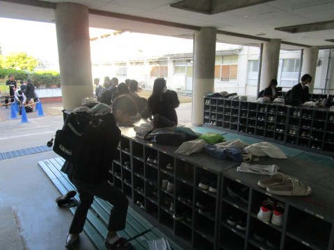 ■今朝の登校風景 ~3年生 第二回実力テスト~