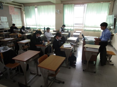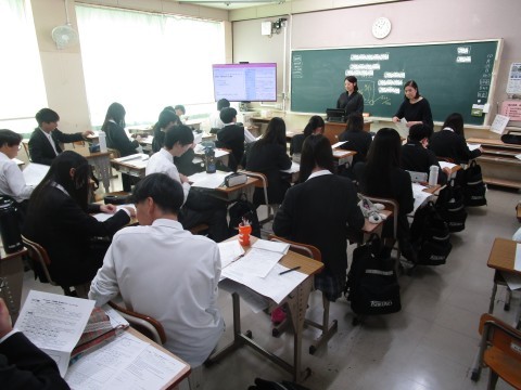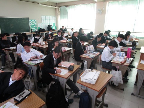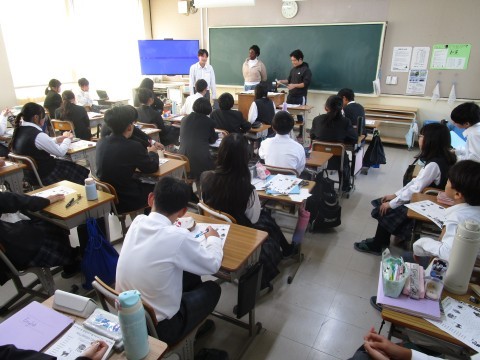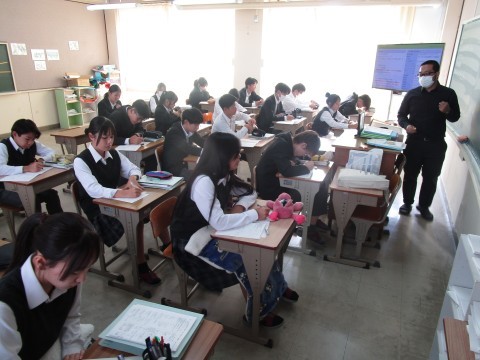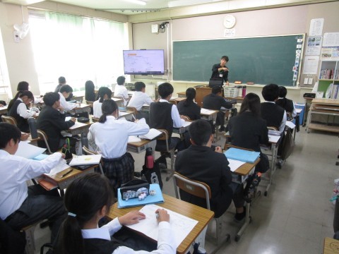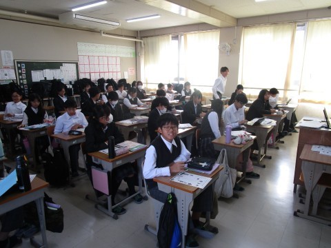 生徒の一人が,ジェスチャーで伝えようと頑張っています。でも,恥ずかしいよね。でもその気持ちはよくわかります。クラスの友達も温かいまなざしで見守っています。