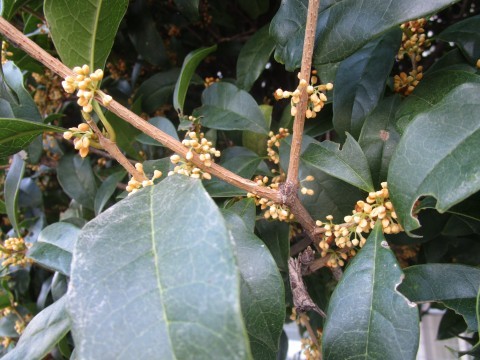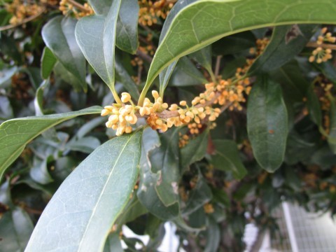 職員/来客用の玄関前にある金木犀(きんもくせい)