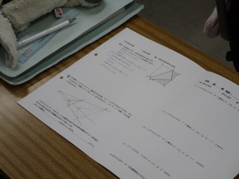 今回のプリントの問題では,「平行な二直線にかんする同位角は同じ角度になる」を知っていないと解けませんし,対頂角や錯角の知識がないと解けない問題もあるでしょう。ほかにも図形の定理として有名な「三平方の定理」や「中点連結定理」など。