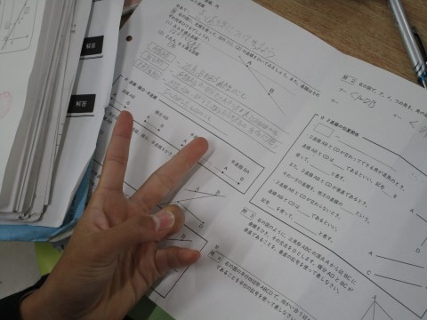 図形の問題には独特の言い回しがあります。その言い回しで問題が解けることもあったりします。基本のところをしっかり押さえていないと,積み重ねの教科と言われる数学では今後難しくなってきます。しっかり基礎基本を押さえていきましょう。