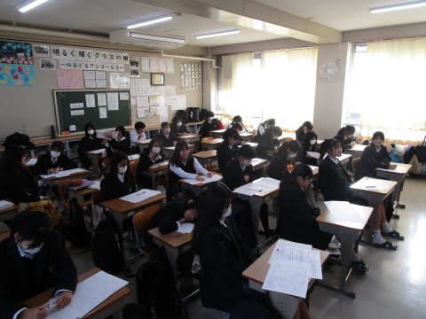 集中して問題に取り組んでいます。2年生の覚悟を感じます。※画像は上から1・2組です。