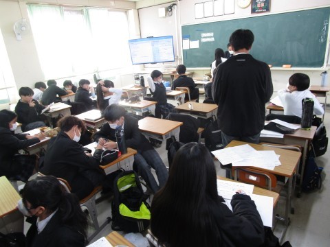 今回はテスト返しなので,クラスに分かれて授業を行っています。