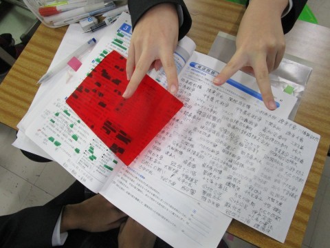 授業の終盤,チャレンジテストの過去問を配布しています。