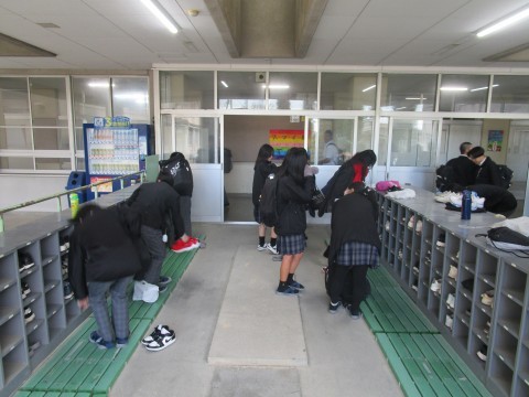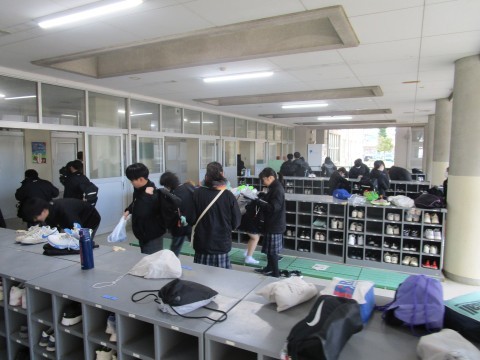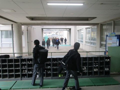 校舎の中に子どもたちのにぎやかな声が戻ってきました。元気に挨拶してくれる生徒たち。さぁ,3学期も頑張っていきましょう。