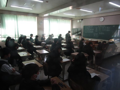 3年生は今日から3日間,卒業テストです。私立高校受験を目前に控えている3年生。先生たちみんなで応援しています。
