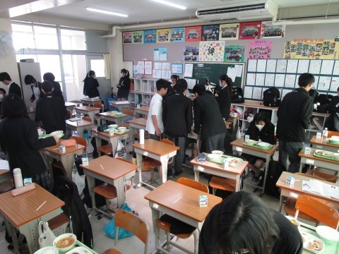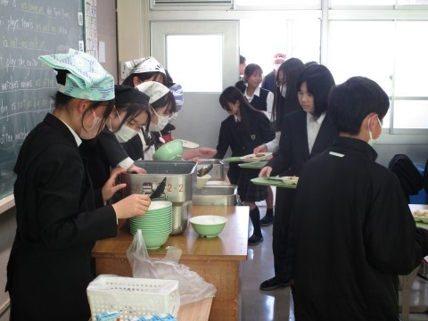 今日の給食は2年生のみの喫食となりました。(1年生:学年閉鎖,3年生:卒業テスト終了後下校)