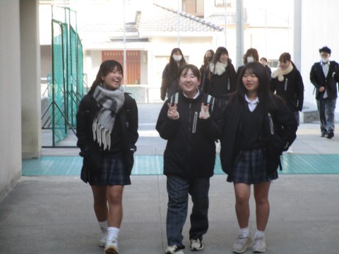2年生の学年閉鎖が明け,3学年が揃いました。3年生は明日多くの生徒が,大阪府の私立高校入試本番を迎えます。緊張するのはみんな同じ。今までやってきたことを信じて,明日の本番を迎えてください。