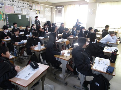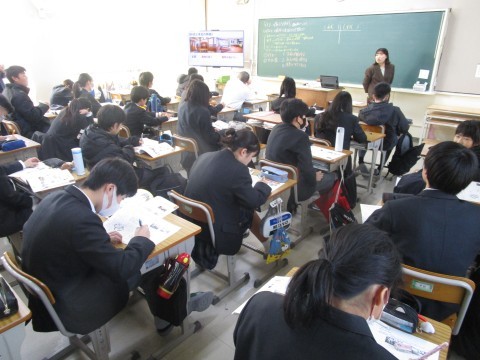 授業の最初は,先生ご自身のことやこれからみんなで授業を作っていきたいというようなお話がありました。短い3学期ですが,学年末テストに向けてしっかり学習を進めていきましょう。