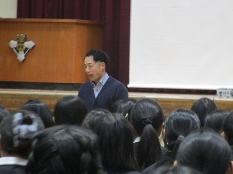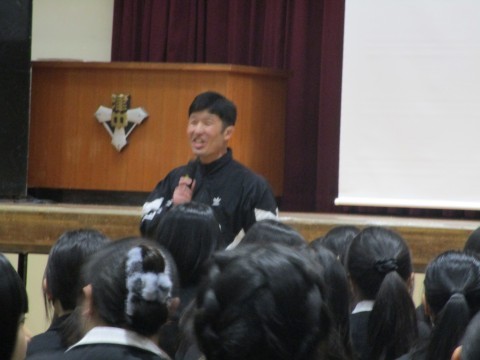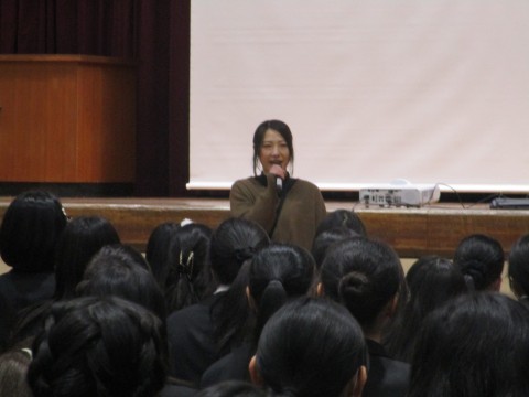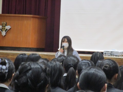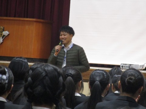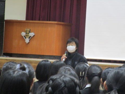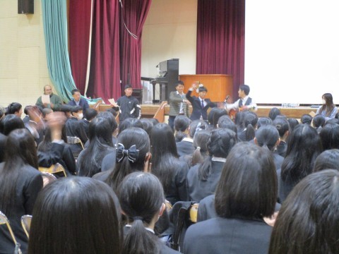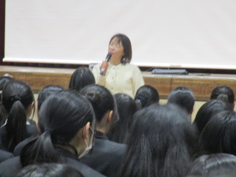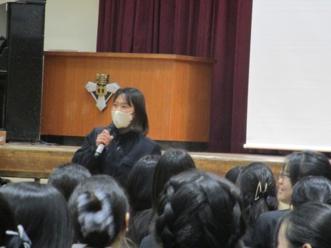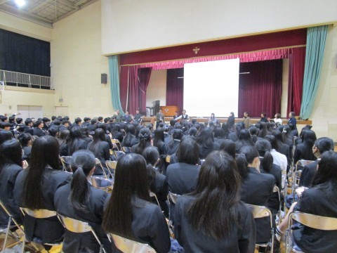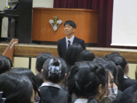 3年生の教員が,様々な先生の協力を得ながら40期生の3年間の歩みを,動画にして披露しています。「え~」や「きゃー」や「わぁー」など,声にならないような声がいろんなところから聞こえています。3年間って,長いようで短かったですね。いろんなことを,その動画を見ながら思い出したことでしょう。
