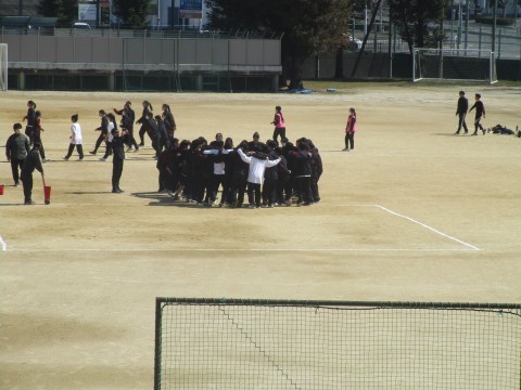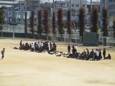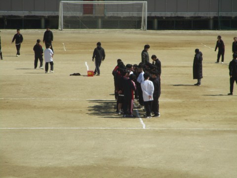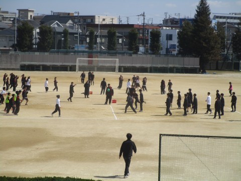 こんなふうに,1年生のクラスとして学年全体で楽しむのもあと少しです。日差しは春のものですが,気温は少し低そうですが熱くゲームはすすんでいます。