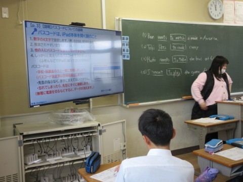 本日,学習用タブレットとしてi padが生徒一人一人に配布されました。大切に使用してください。