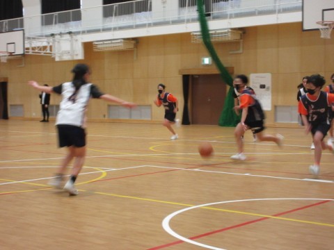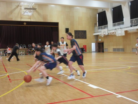 休日に,他府県から本校へ遠征に来ていただき練習試合を行いました。うまいチームと試合をすることで駆け引きや,試合の流れをつかむよい練習となりました。