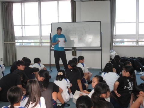 体育科から男女バスケットボール部に,決勝審判のやり方をレクチャーしてもらっています。