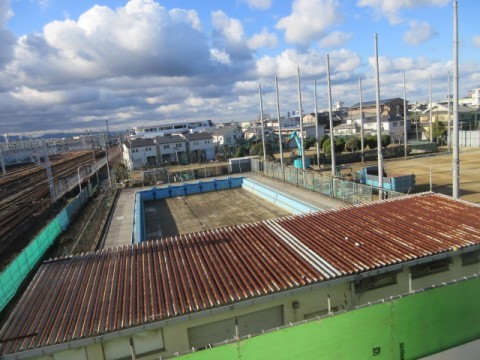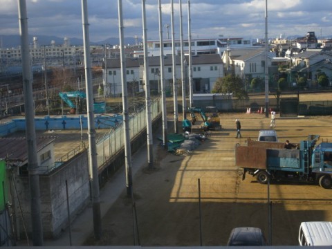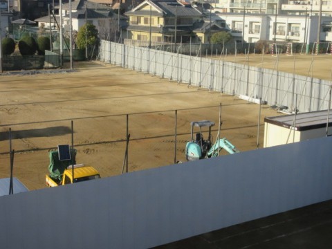 新テニスコートが完成し,次は旧プールの解体作業が始まっています。