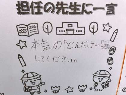 【写真】上:1組、下:7組の子の担任の先生へのメッセージ