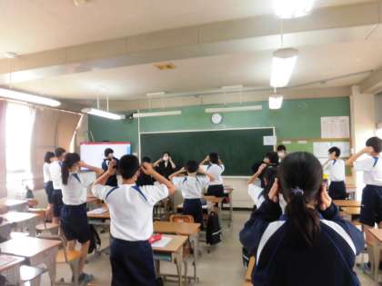 1年生英語です。発音せずに動作で表しています。