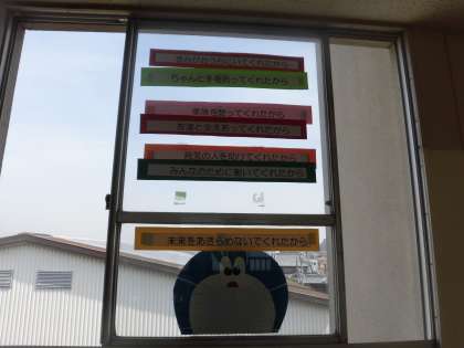 1年生のフロアには感謝の言葉がいっぱいです。いつもホッとします。