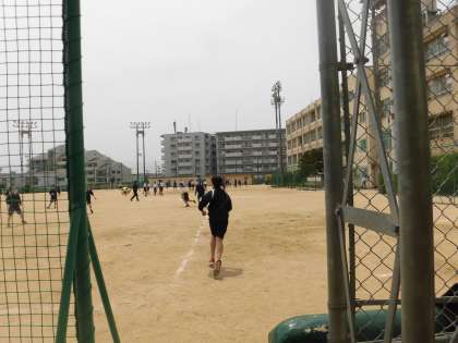 体育の授業です。汗をかいた後はしっかり水分補給してください!!