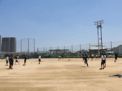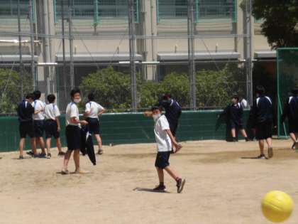 2・3年が過ごす第1グラウンドでは迫力満点のドッジボールや鬼ごっこが行われています。
