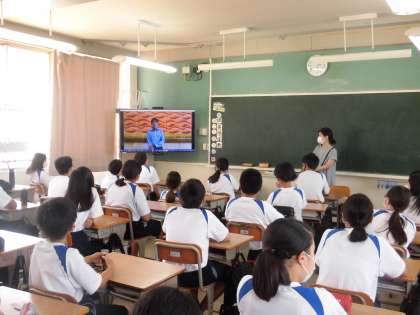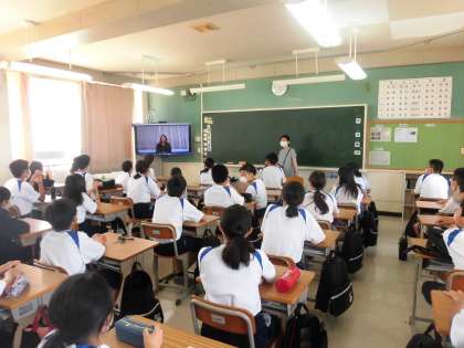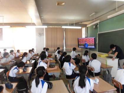 新しい集会の形です。皆さん真剣に見て、聞いてくれています。