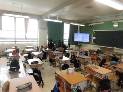お昼休みにしかゆっくり話せないこともあるのかも。友達とじっくり話す人たちもいます。皆、すごくいい表情です。