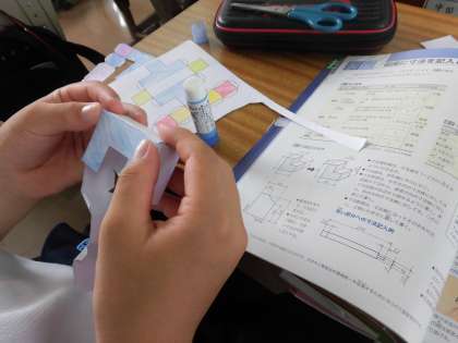 技術科の授業では設計図をかき、展開図から実際に作成をしていました。みなさんとても器用です。