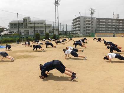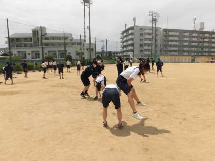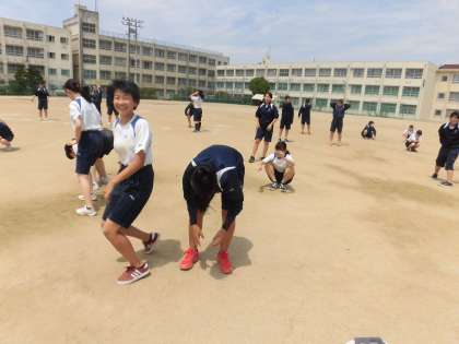 女子体育も全員でテキパキと準備運動をしています。