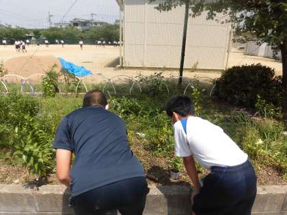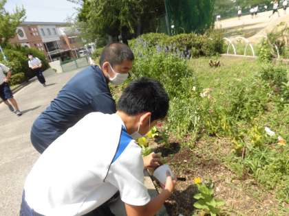 環境美化委員さんと岡本先生が昼休みに花壇の手入れをしてくれました。
