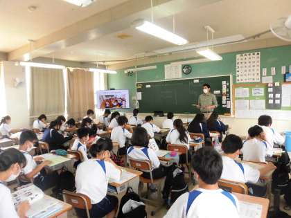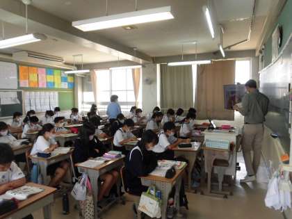 こちらの英語はメンデス先生の授業です。 メンデス先生の発音に合わせて小声でリピートします。
