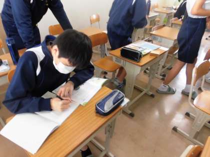 休み時間 公開日 2020/07/02 更新日 2020/07/02 お知らせ 休み時間に教室をのぞくと次の授業の準備をしている3年生がいました。チャイムの前に先生が声をかけると全員教室に!!さすが3年生。