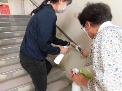 生徒の皆さんが下校した後は先生方が消毒作業を毎日続けています。