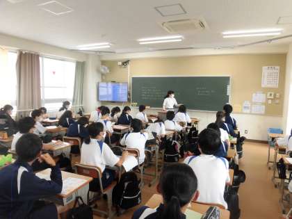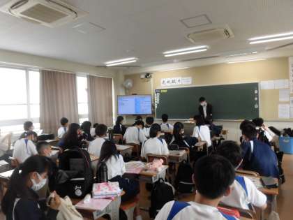 授業の準備や配布物を配ったり、朝からクイズをしているクラスもありました。