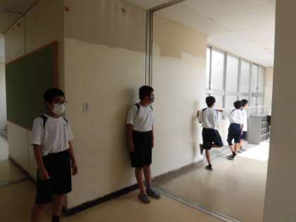 本日は心電図の検査です。 印をつけなくても自分たちで並ぶ時には間隔をあけて待ちます。