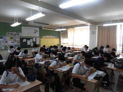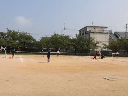 男子体育は教室で、女子は第2グラウンドでテニスです。