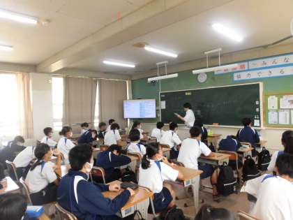 美術・英語・数学の授業の様子です。 どのクラスも静かです。
