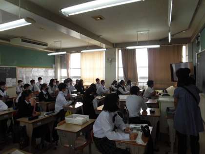 英語授業では、いつも盛り上がっているようです。 自分たちの班が指名されるのでは?とドキドキですね。