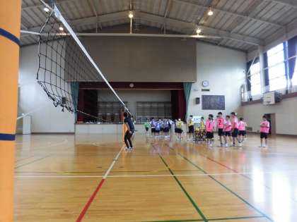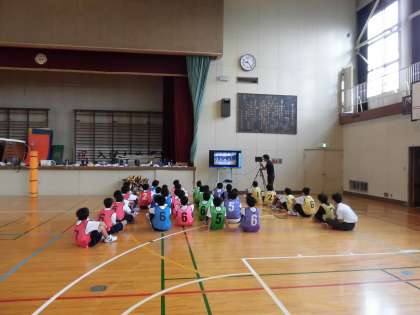 男子体育です。 最初に映像で確認して説明を聞いています。