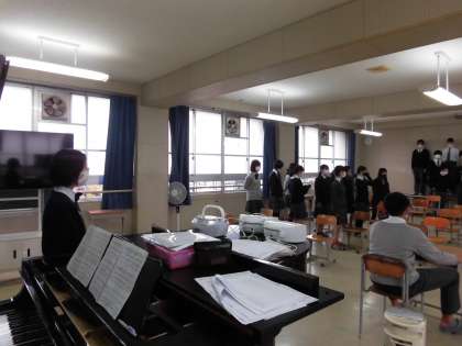 音楽は合唱コンクールの立ち位置チェック中でした。
