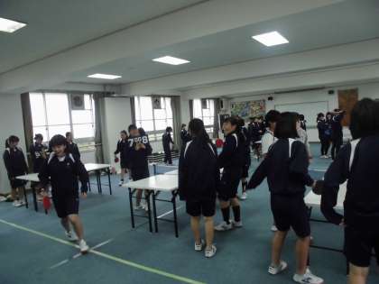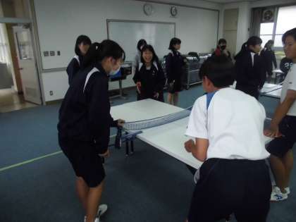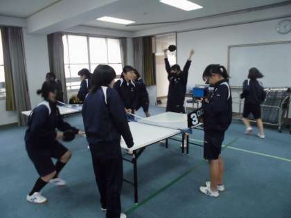 3年女子の体育の様子です。今日は集会室での卓球の授業。大変盛り上がっていました。