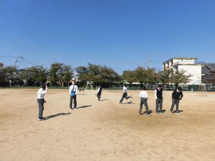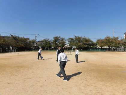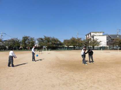 ドッジボールか、鬼ごっこか、皆で決めているようです。