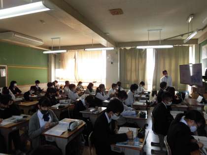 社会科授業の様子です。 歴史分野の「新石器時代」について学習していました。